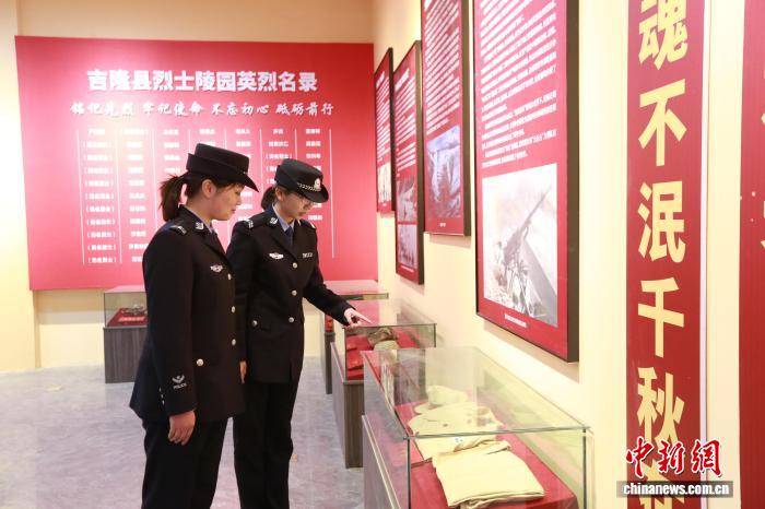今日西躲凶隆相差境边防查抄站构造平易近警前去凶隆县义士陵寝,启铺“传启