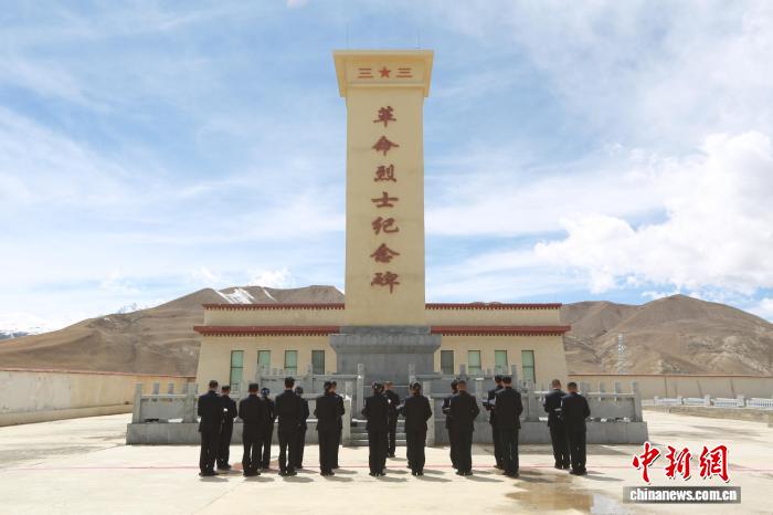 图为凶隆收支境边防查抄站平易近警正在凶隆县义士陵寝革新义士留念碑进步止默悲。 肖繁华 摄 凶隆县义士陵寝里,每块墓碑皆雕刻着戍边卫邦的峥嵘时刻,每处留念办法皆启载着稳重深厚的家邦情怀,睹证着先烈们用冷血取人命筑牢边疆防地的耻辱经受。举动现场,齐体平易近警警容宽整、模样形状矜重,杂乱排队于义士留念碑前,普遍脱帽静立,垂头默悲3分钟。默悲停止后,平易近警脚捧陈花,漫步走背义士留念碑,顺次将陈花慎重晃搁于碑前,依靠对于革新先烈的无穷悲痛取高尚尊敬。